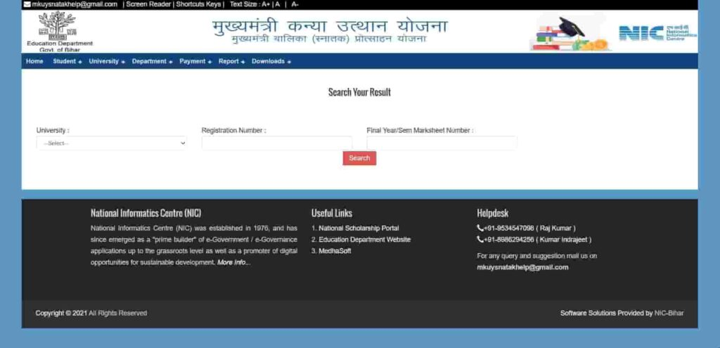 1. सबसे पहले आपको मुख्यमंत्री कन्या उत्थान स्नातक पास योजना के अधिकारी वेबसाइट के होम पेज पर जाना है, जो इस प्रकार होगी ।